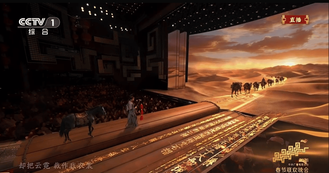 在歌咏创意秀《贺花神》、舞蹈《丝路古韵》中,演员穿梭于跨越古今的时空场景,呈现出震撼的互动奇观。这背后,是总台“央视听媒体大模型2.0”的首次大规模春晚应用。